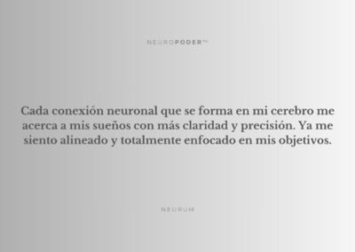 La neurociencia demuestra que las afirmaciones, cuando se combinan con una emoción genuina, actúan sobre la neuroplasticidad. Esto permite que los circuitos cerebrales asociados con creencias limitantes se reconfiguren, creando nuevas rutas neuronales que apoyan tus objetivos. Cuanto más intensas sean las emociones involucradas, más fuerte será el impacto.