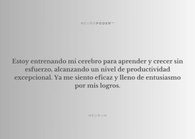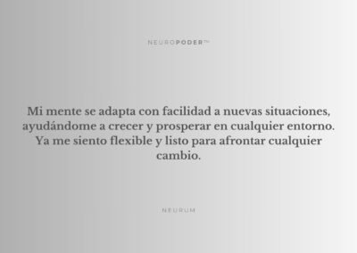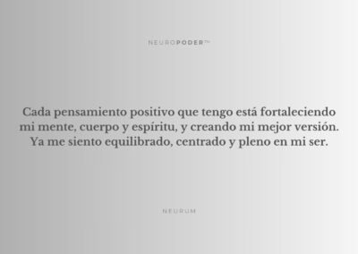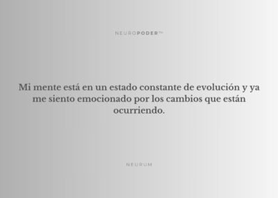 El impacto de las afirmaciones aumenta con la práctica constante. No te enfoques en resultados inmediatos, sino en consolidar un nuevo patrón mental. A medida que repites las afirmaciones, visualiza cómo ya formas parte de lo que estás afirmando, permitiendo que tu cerebro comience a reestructurarse de forma profunda y duradera.